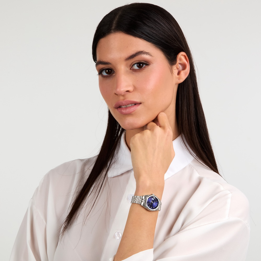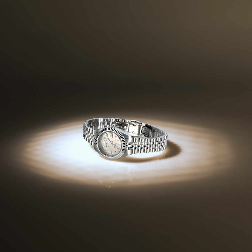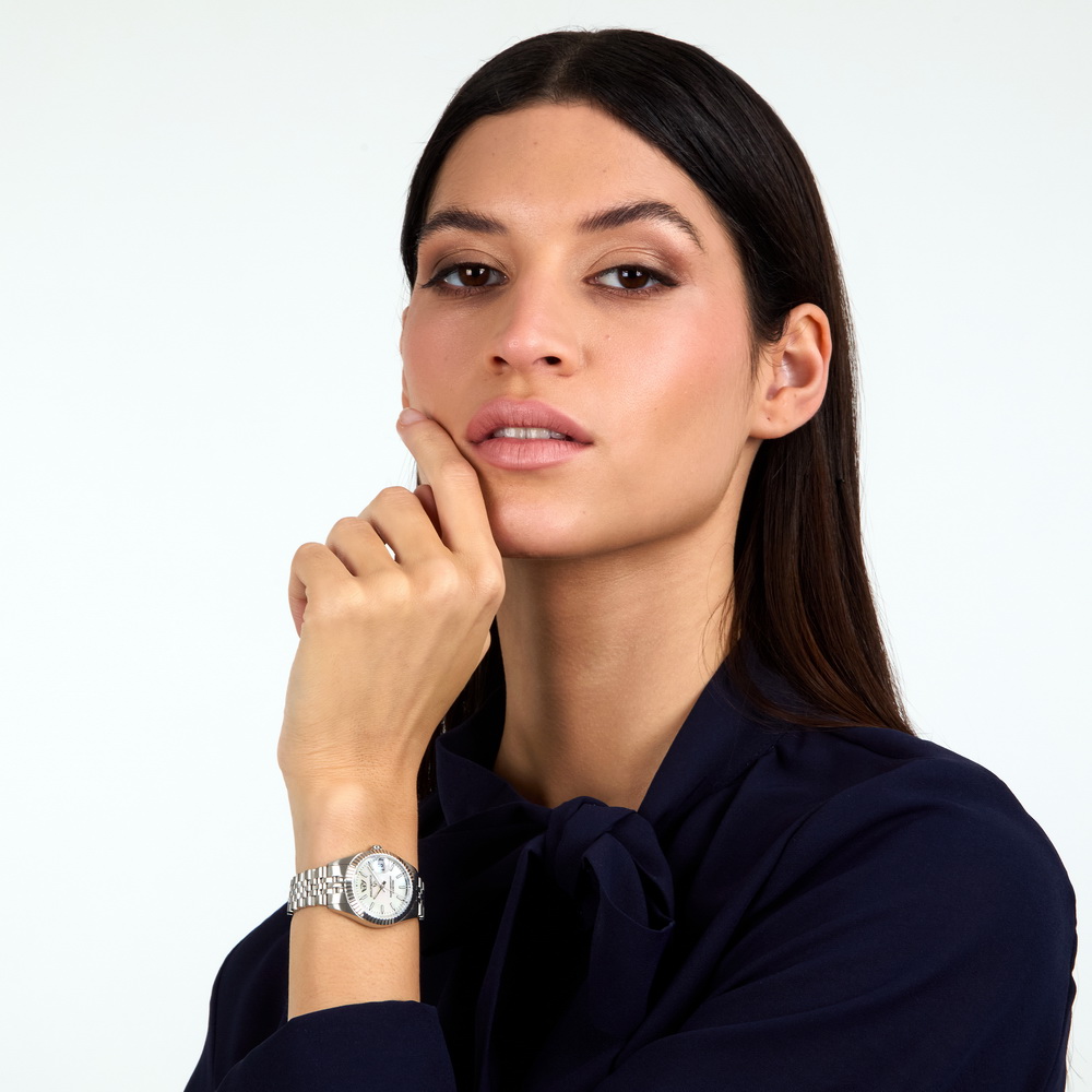 Часы с перламутровым циферблатом и стальным браслетом изысканно смотрятся с вечерними платьями, деловыми костюмами и элегантной одеждой. Для женщин, выбирающих кварцевые часы компактного размера с переливающимся эффектом и практичной датой. Очаровательны для светских приемов, офиса и торжественных событий.