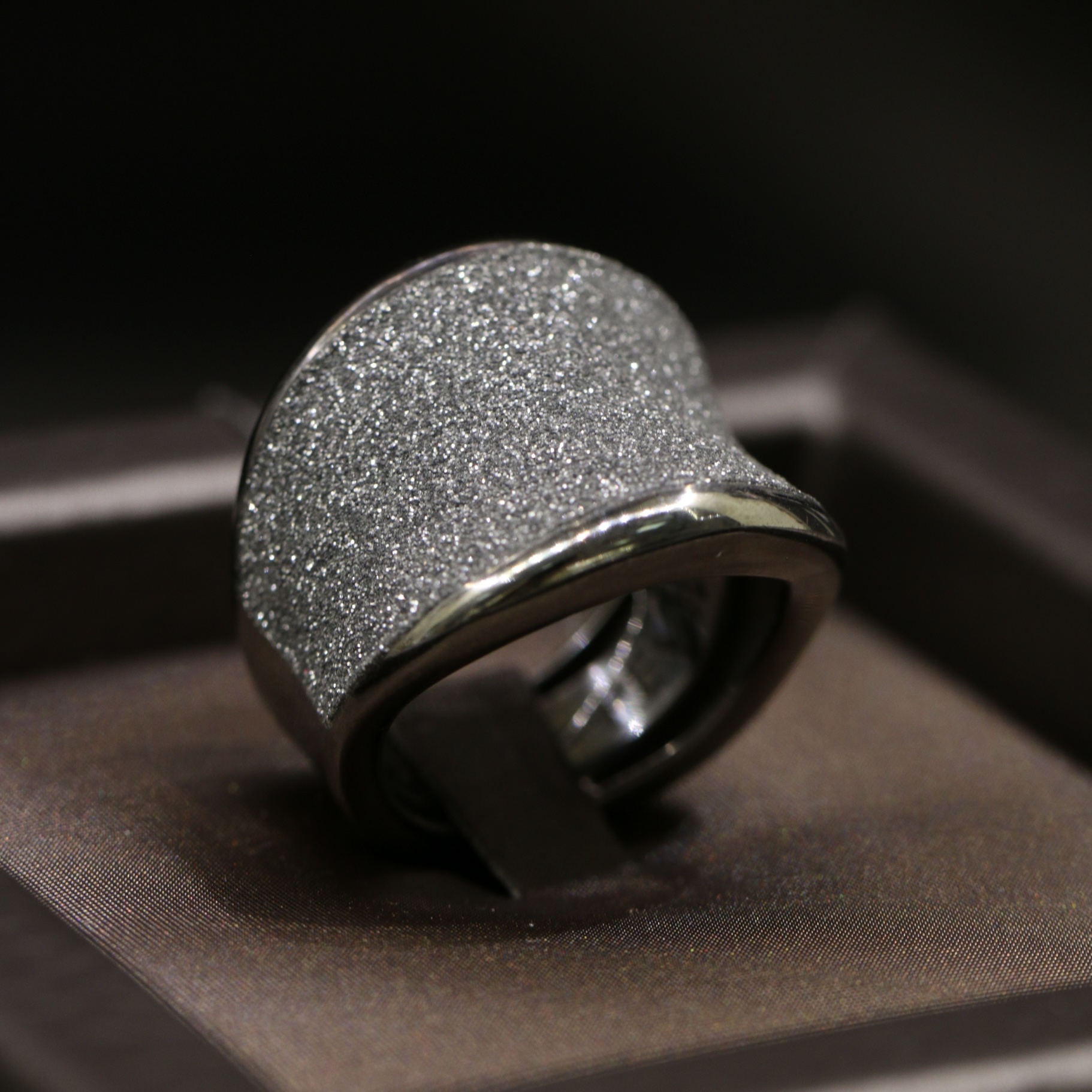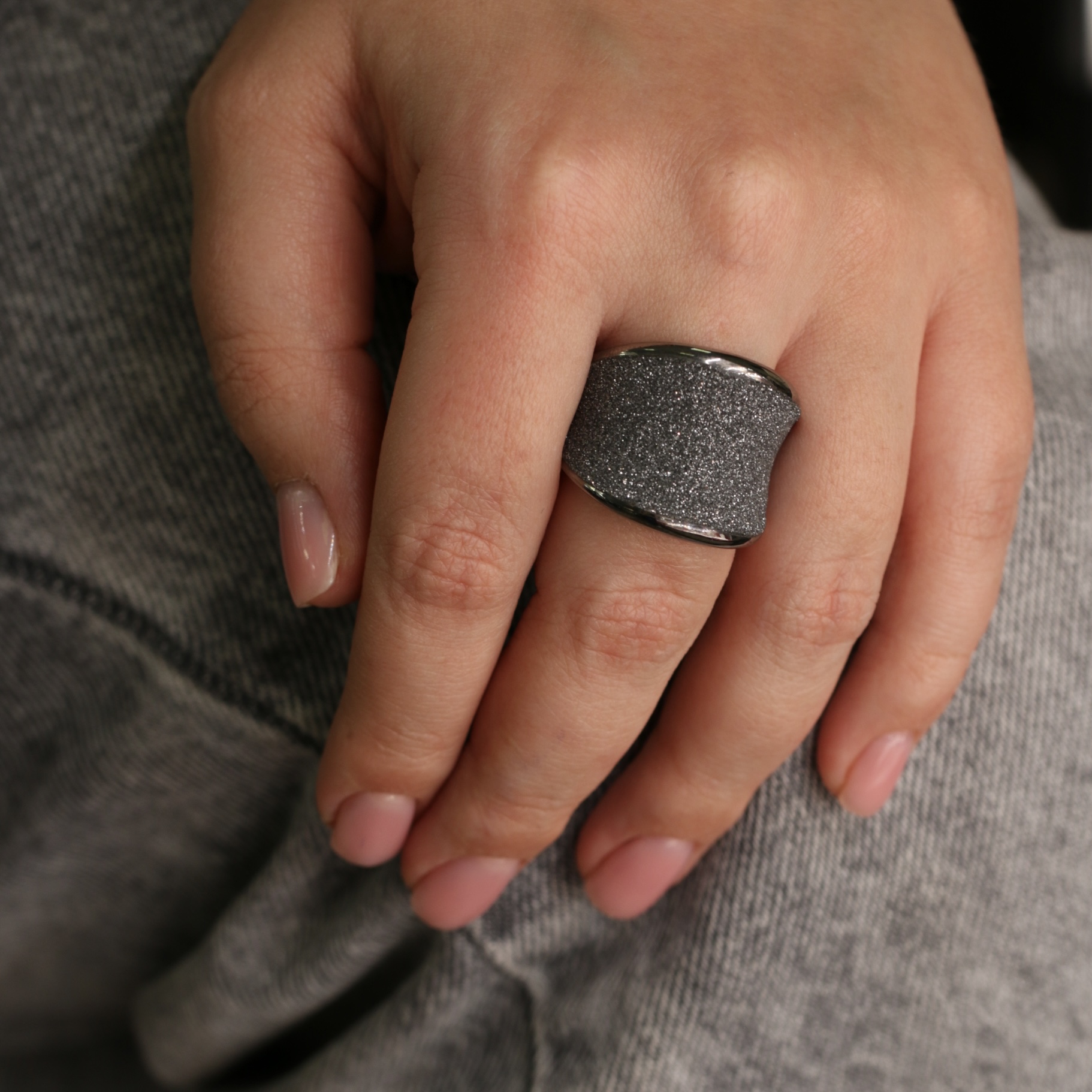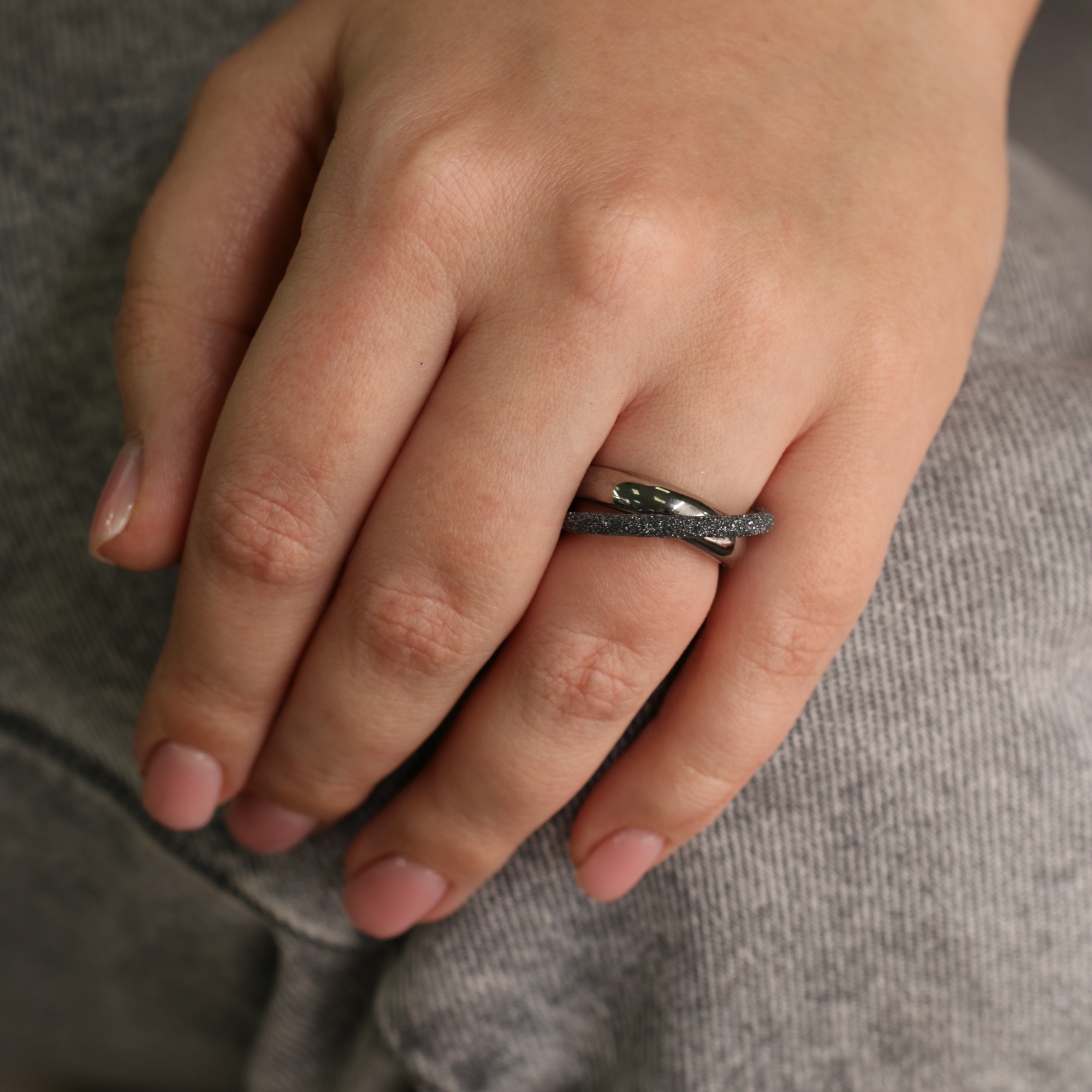 Кольцо из коллекции Polvere di Sogni. Серебро 925, Гальваническое покрытие рутением, покрытие "Звездная пыль". Регулируемый размер кольца внутри заданного диапазона. Украшения из коллекции Polvere di Sogni («Звездная пыль») объединяет уникальный сплав для декорирования серебра. Он представляет собой особый сплав эмали и частиц природного происхождения, искрится и наполняет украшения светом.