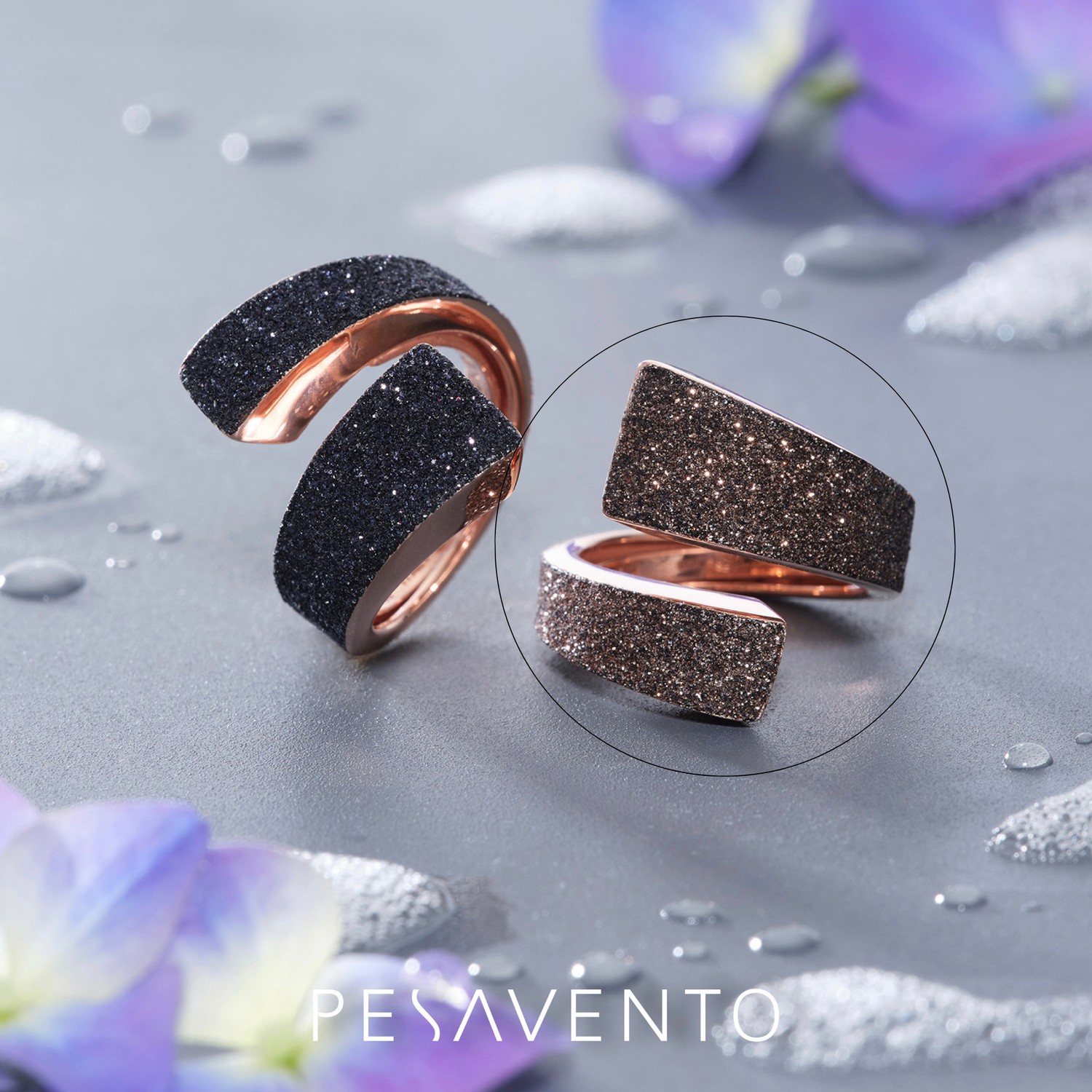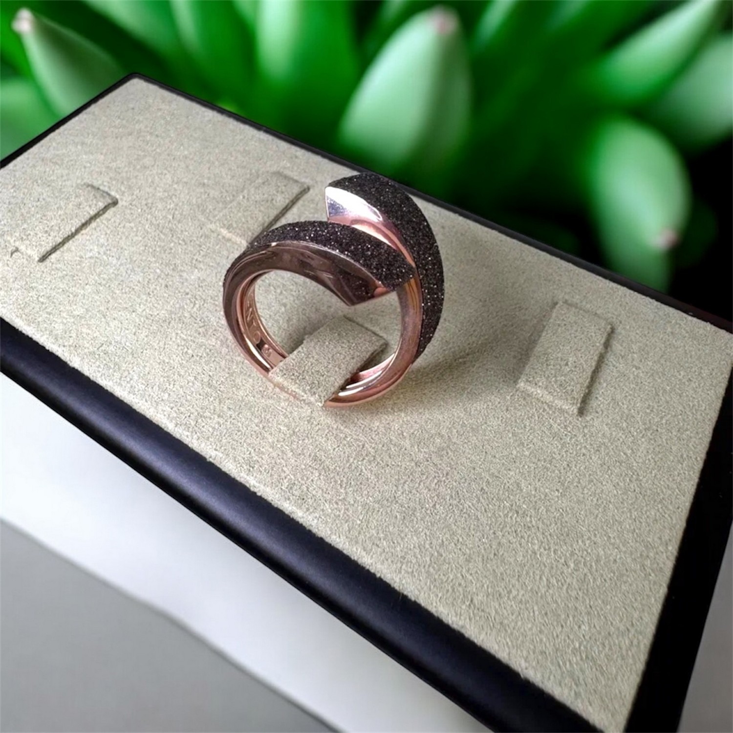 Незамкнутое кольцо Pesavento из коллекции Polvere di Sogni в минималистичном дизайне из серебра покрытого позолотой и эмалью с микрочастицами, полученными с помощью нанотехнологий из натуральных минеральных материалов.